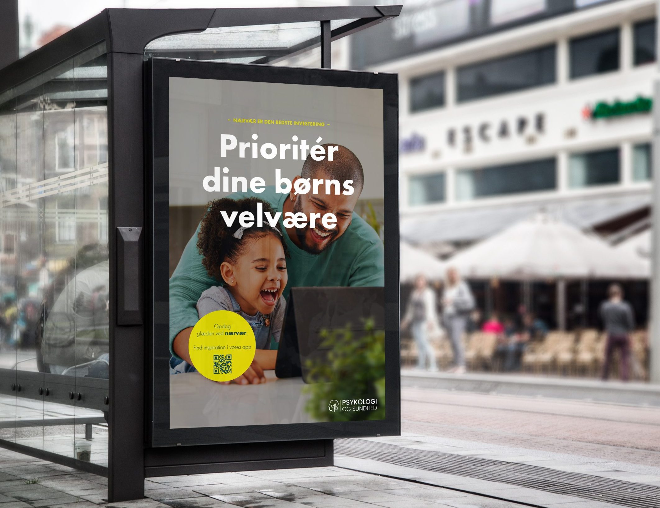 Vi skulle udvikle en identitet og kampagne for den fiktive virksomhed Psykologi og Sundhed. Kampagnen skulle sætte fokus på nærvær og hvordan vi er sammen, med fokus på brugen af overdreven brug af mobil har indvirkning på vores overordnede sundhed.